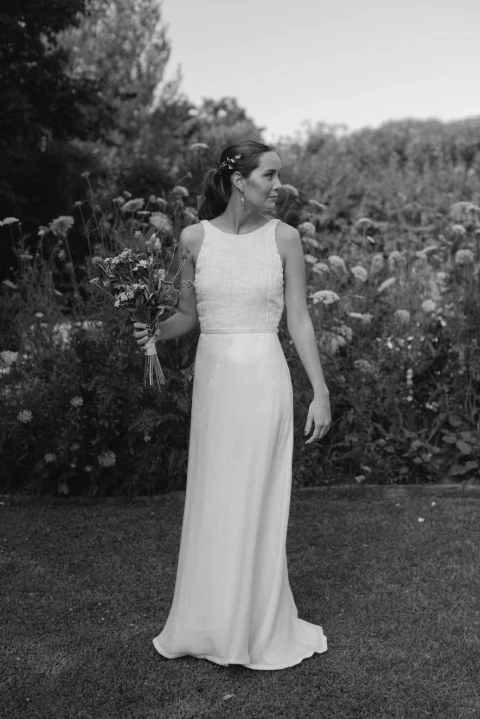 Inspirada en la naturaleza y en las fibras nobles, crea piezas atemporales que pueden resignificarse y acompañar en otras ocasiones especiales. Su musa es una mujer libre, fresca y auténtica.