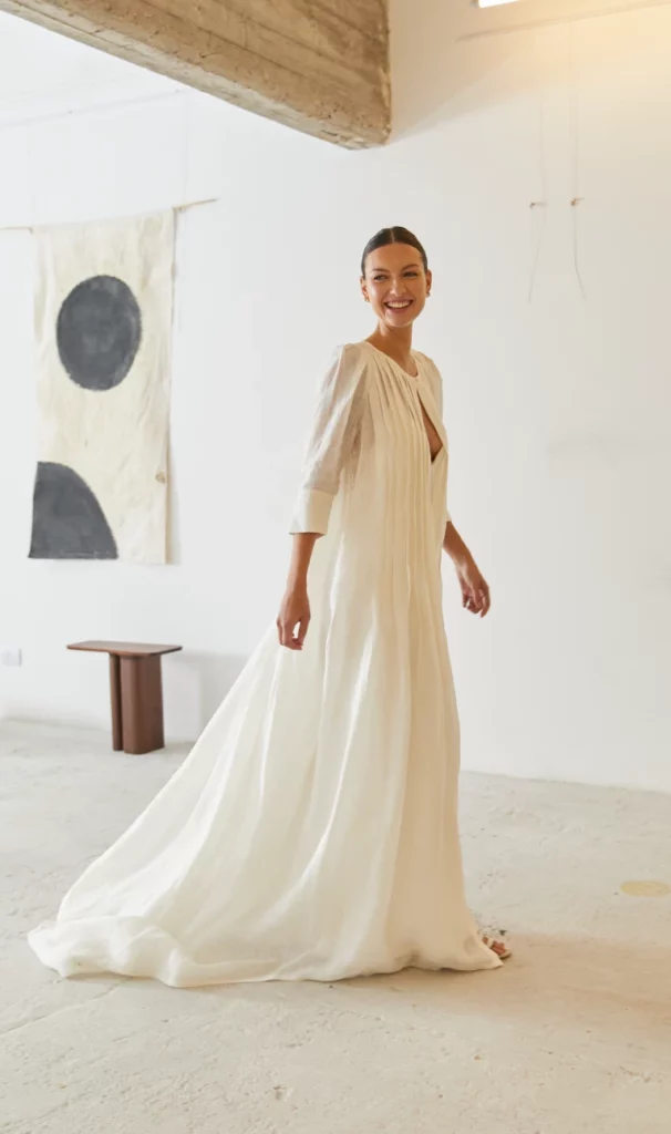 Largo total de falda espalda con arrastre incluido: 132 cm